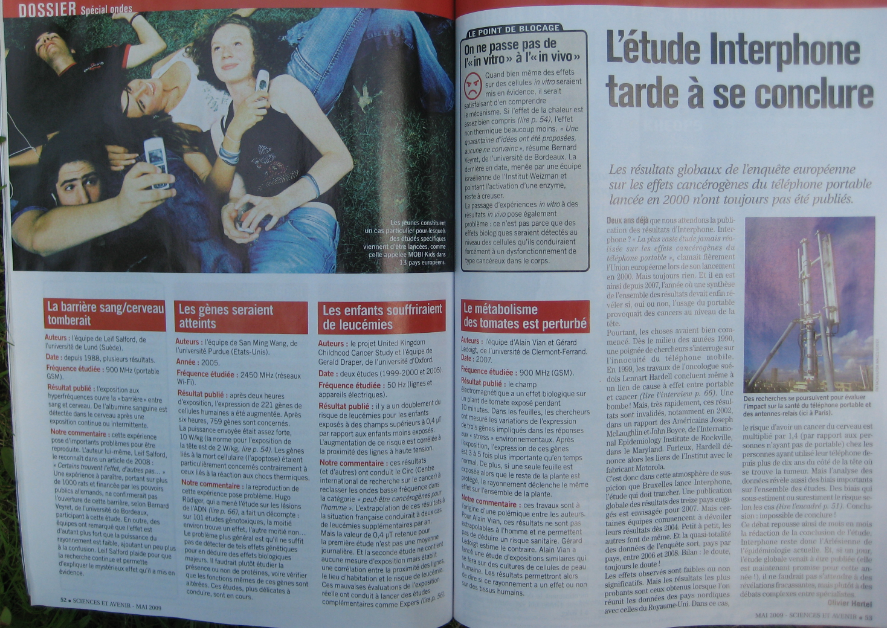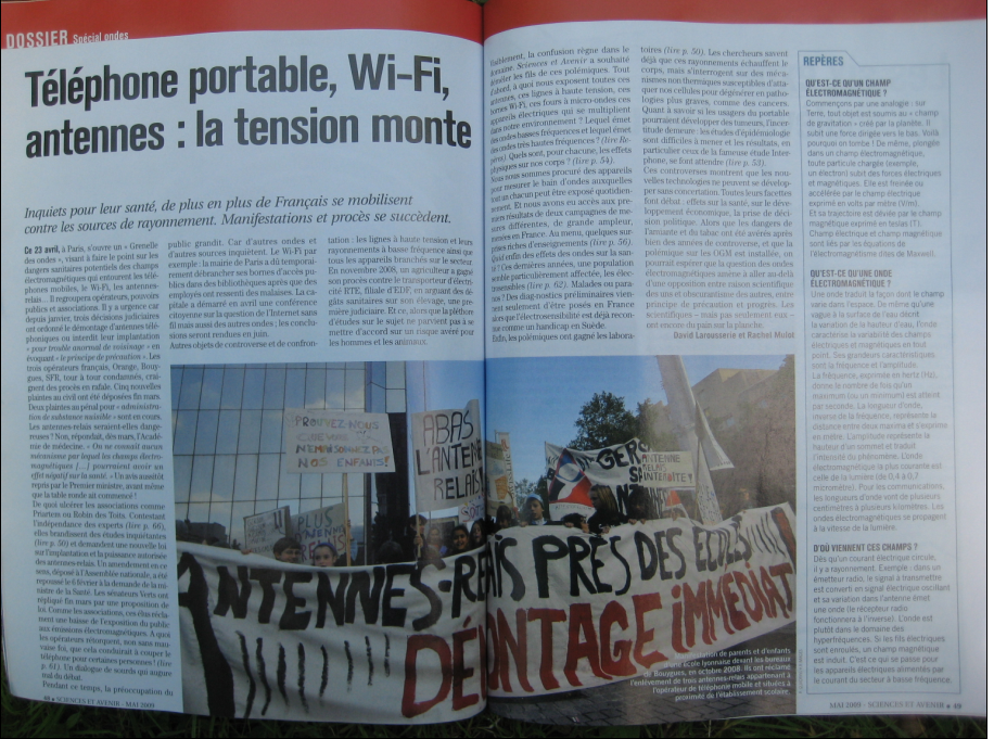 Un dossier de 20 pages sur les micro-ondes dans la revue SCIENCES ET AVENIR DE MAI 2009