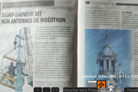 2 janvier 2010 - REFUS DES ANTENNES VIDÉOTRON DANS LE CLOCHER DE L'ÉGLISE DE SAINT-SAUVEUR